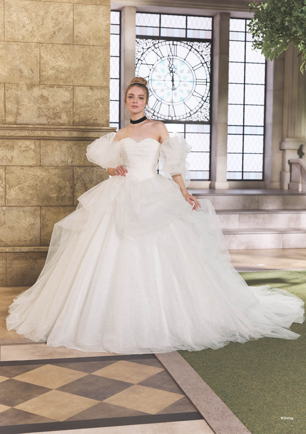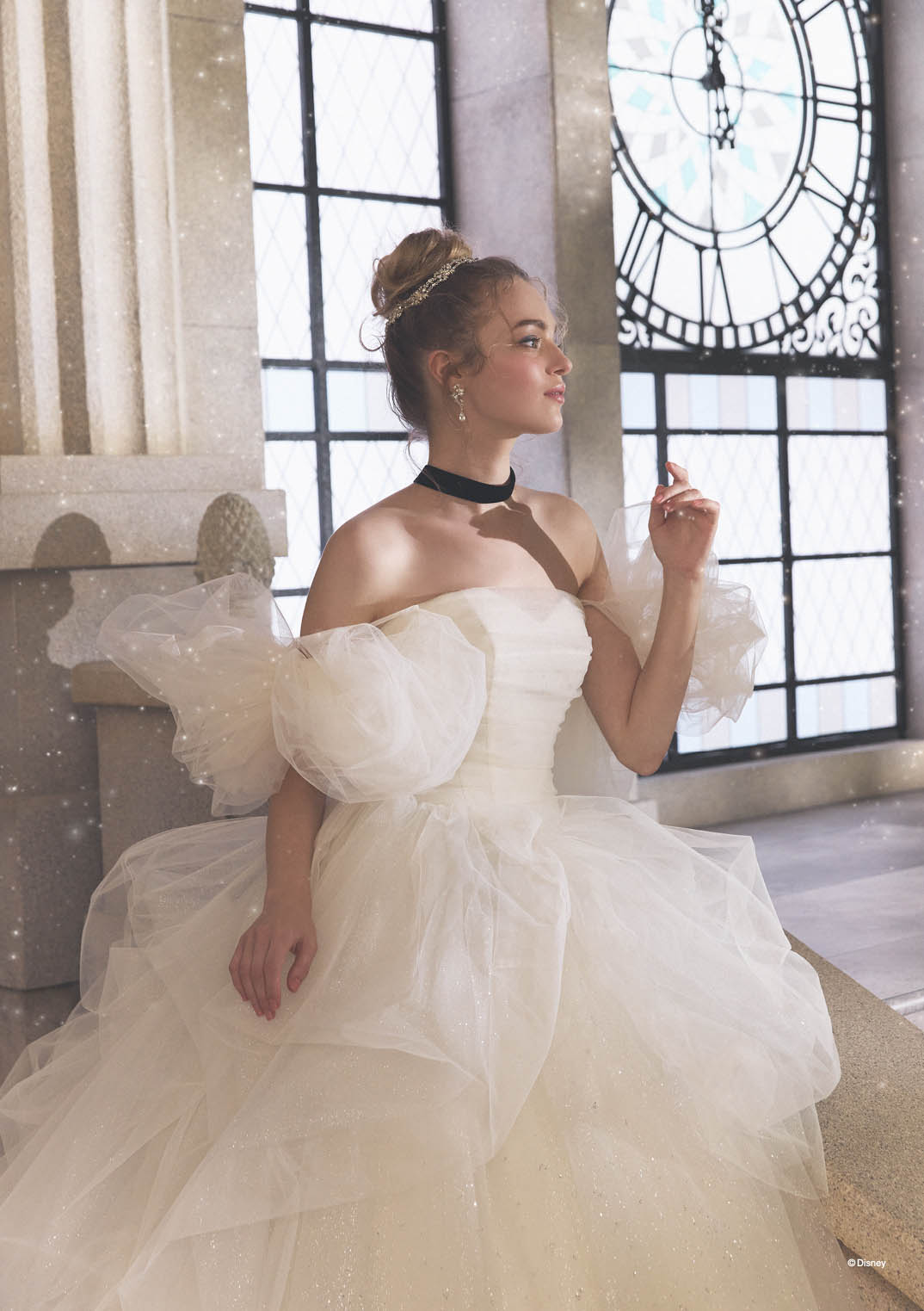 「シンデレラ」にかけられた魔法の煌めきを、2 種類のグリッターチュールを贅沢に重ね合わせて表現した、ロマンティックな一着。