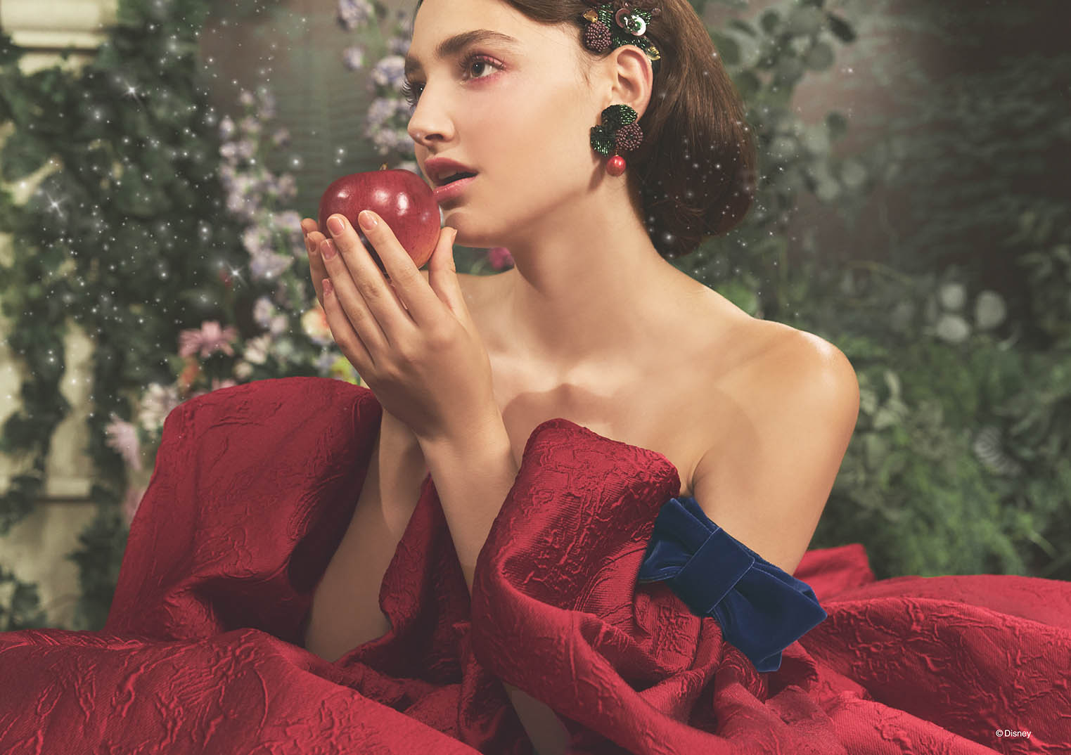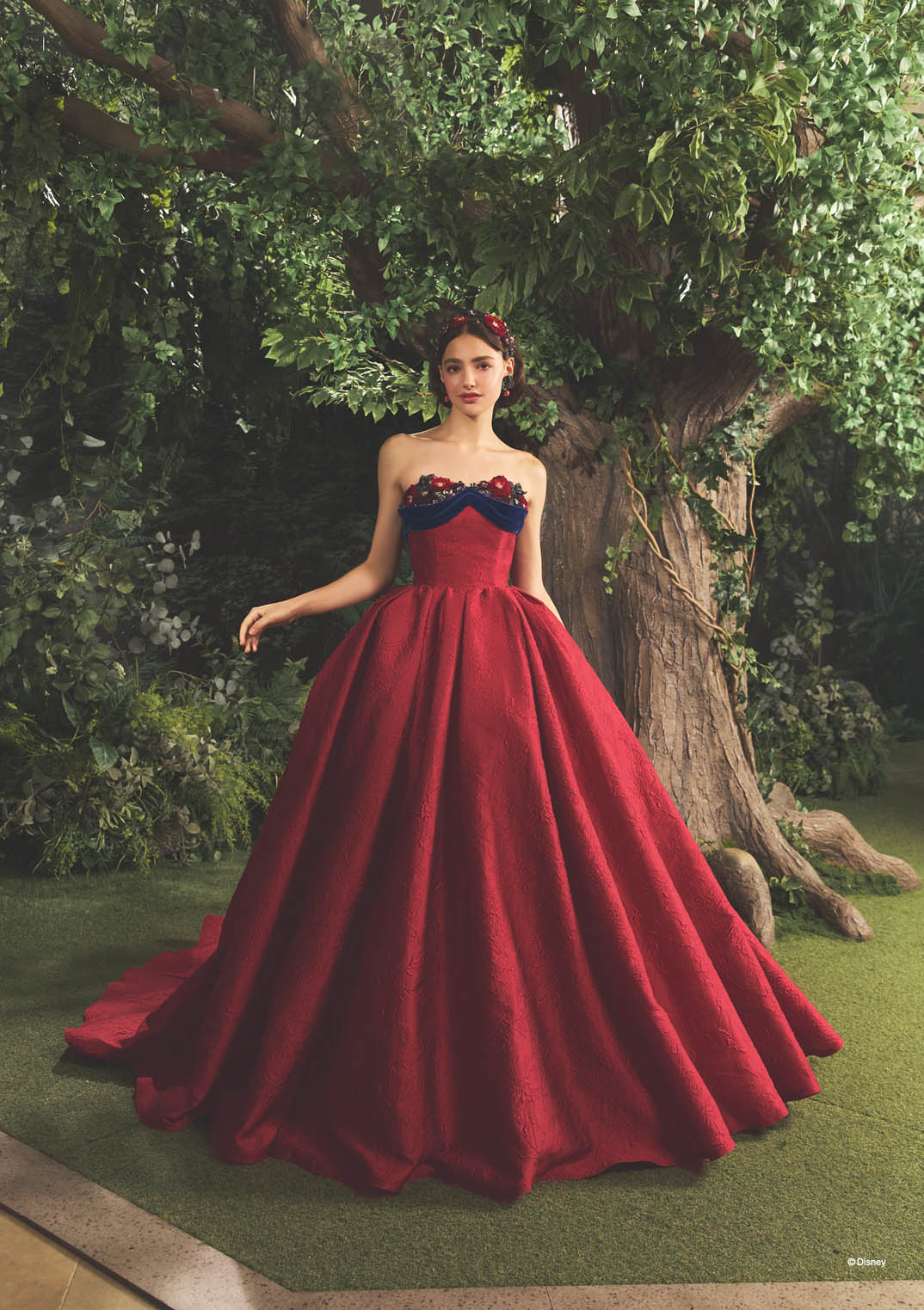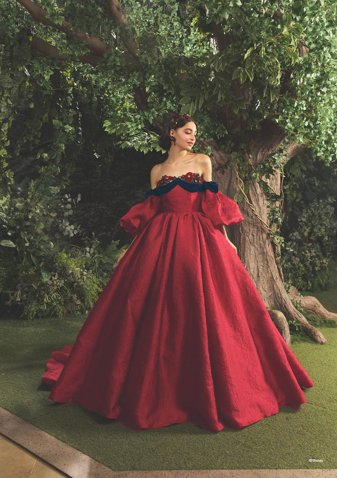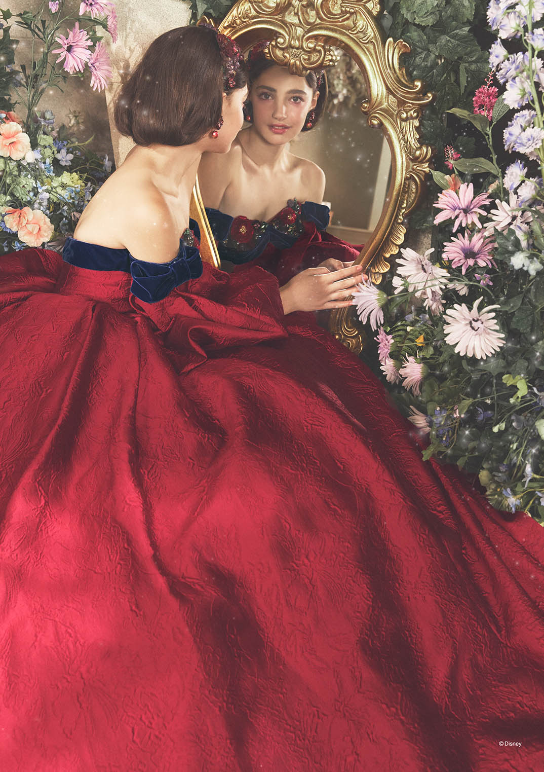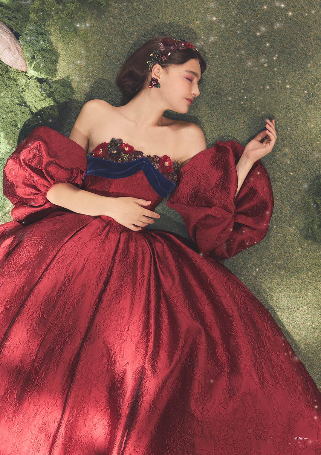 「白雪姫」の赤いリップを思わせるジャガード素材を贅沢に使用した、気品あふれる 1 着。