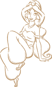 ゴールドのスパンコールチュールでオリエントな煌めきを表現。「ジャスミン」らしいスレンダーなシルエットにゴージャスなビジューモチーフで王女らしい気品あふれる雰囲気に。
